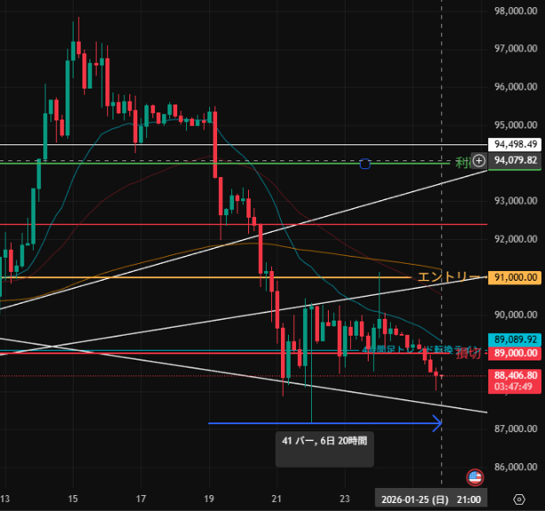 - 日時:1/16エントリー → 今週損切り